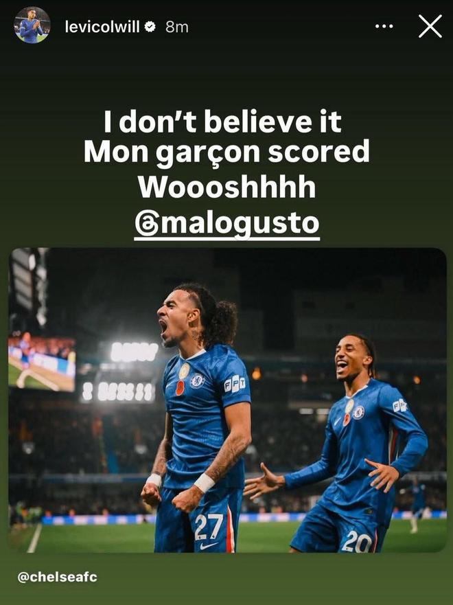 英超第11轮,切尔西主场3-0大胜狼队,切尔西后卫古斯托斩获职业生涯一线队首球,对此,队友科尔威尔在社交媒体调侃称他不敢相信古斯托居然进球了。