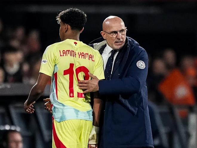 不过,自10月份退出国家队后,亚马尔已代表巴塞罗那出战了全部五场比赛。德拉富恩特据此认为,这位18岁小将的身体条件足以应付国家队任务。“前几天观看他的比赛时,他的状态非常好,”德拉富恩特表示,“他的教练也说他已准备好出场。他正在逐渐找回最佳状态,我们对此感到高兴。”