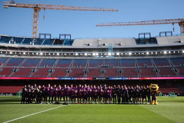 巴萨在回归诺坎普公开训练时,球场周围还架着很多塔吊